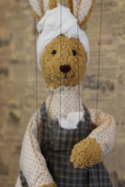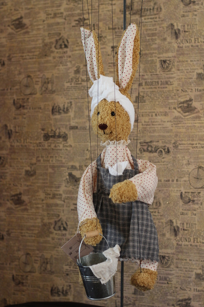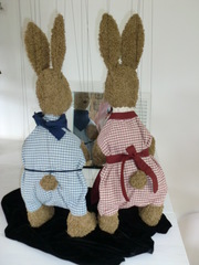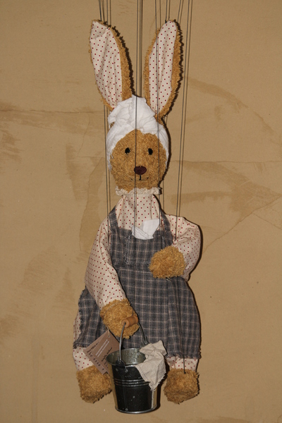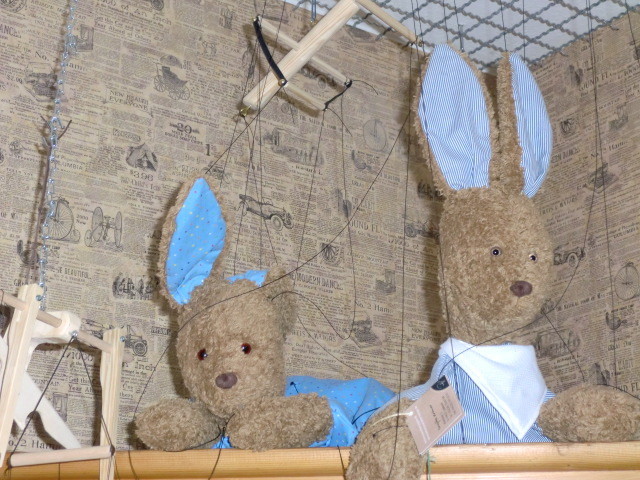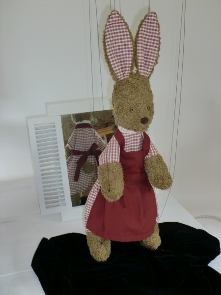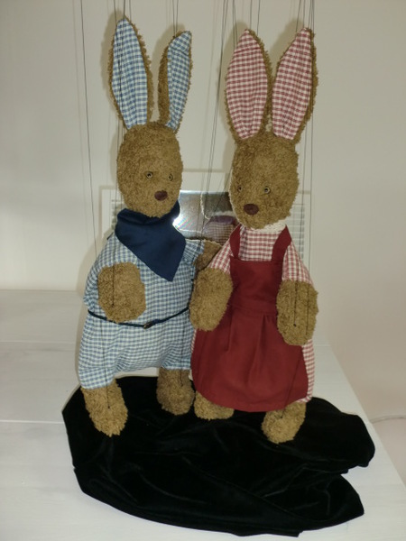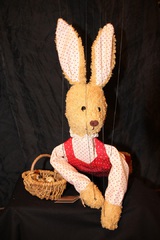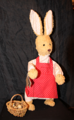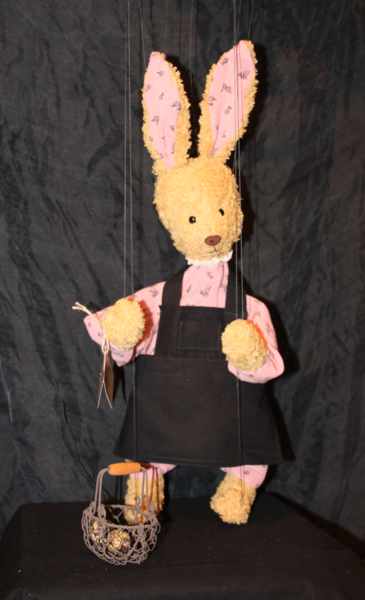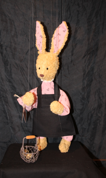 Die Hasen sind ca. 55 cm groß, mit Spielkreuz ungefähr 100 cm. Sie hängen an 8 Fäden.